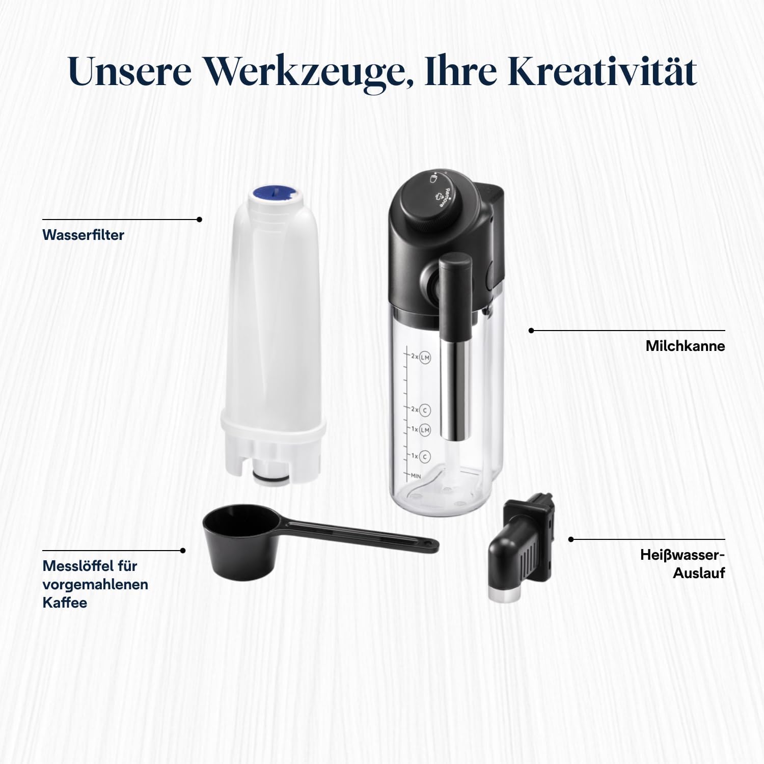 - BEREIT FÜR IHRE NÄCHSTE TASSE: Die Milchkaraffe reinigt sich auf Knopfdruck automatisch, wobei die kratzfeste Abtropfschale mit spülmaschinenfestem Gitter für minimalen Aufwand sorgt – so bleibt viel Zeit, um Ihre Lieblingsgetränke zu genießen